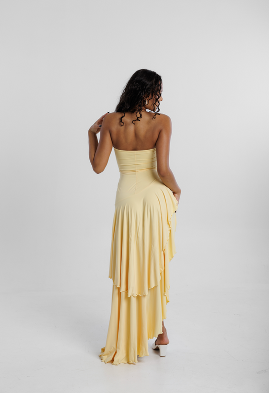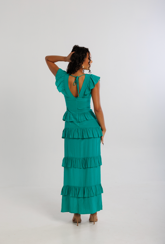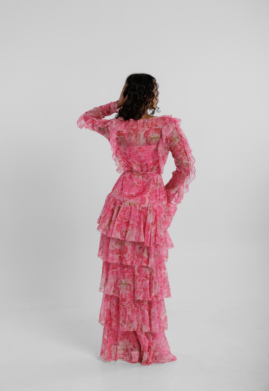 Diletta Ruffle bleikur maxi Gown / Kjóll