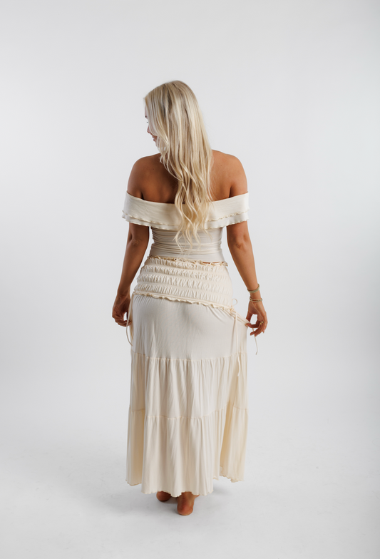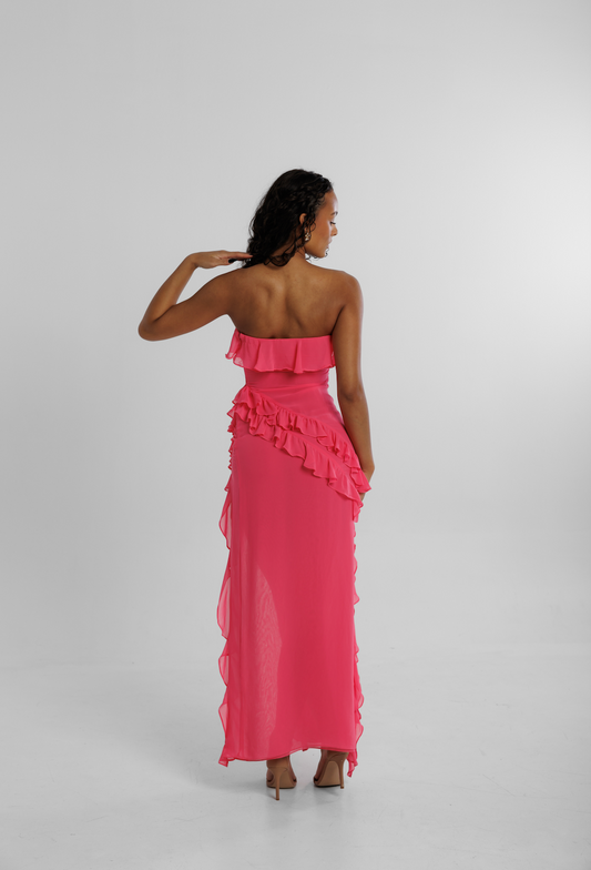 Diletta Ruffle bleikur maxi Gown / Kjóll